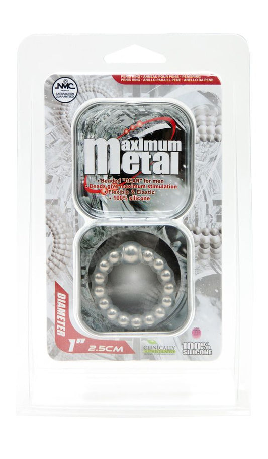 Nanma Maximum Metal 100% Silicone Beaded Cock Ring Silver
