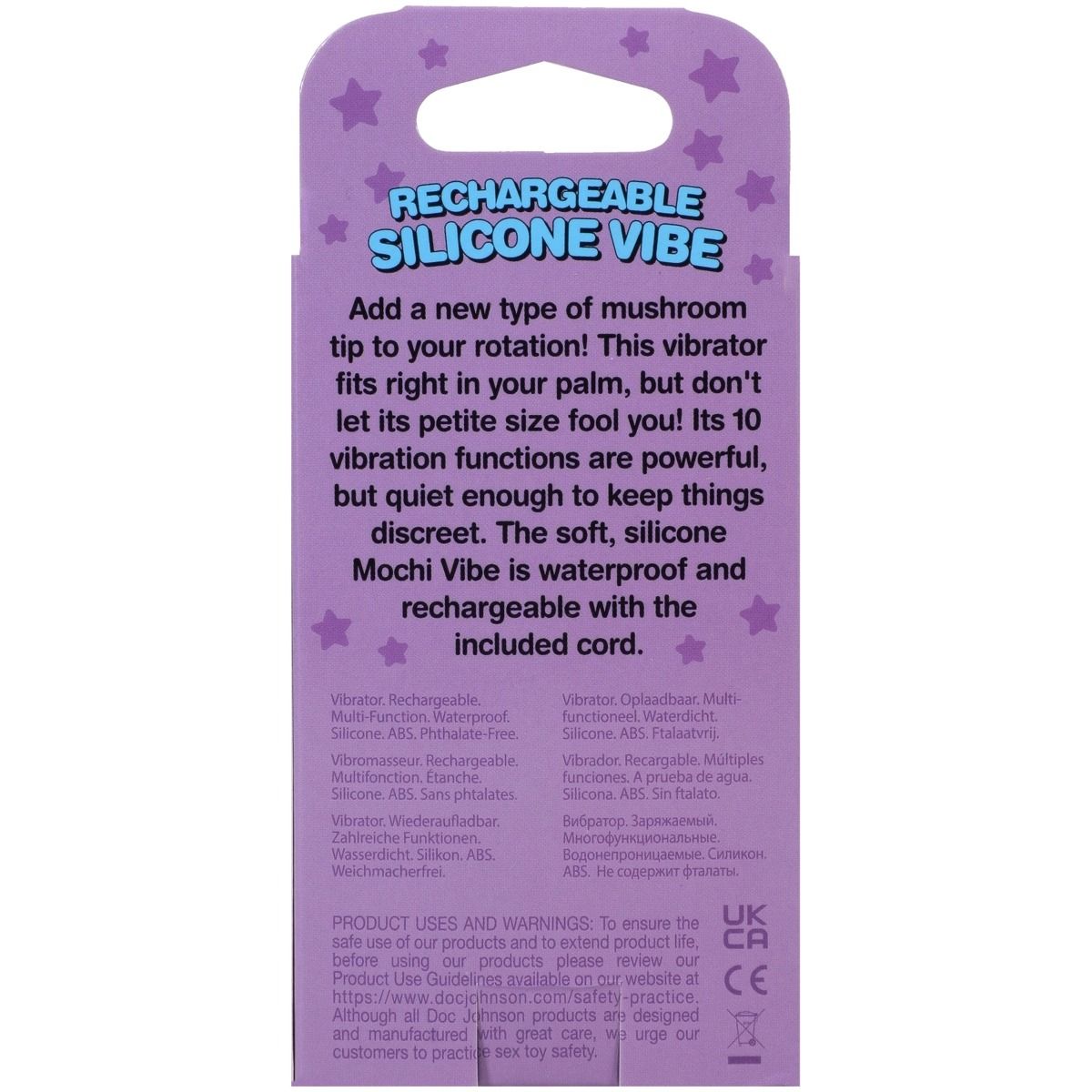 The soft, silicone Mochi Vibe is waterproof and rechargeable with the included cord.
