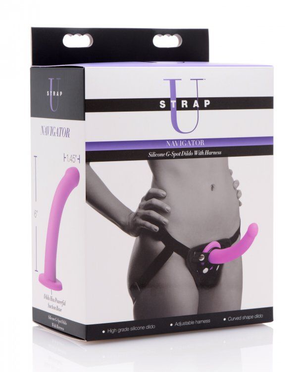 Perfect for pegging or vaginal sex this strap-on set has everything you need for a comfortable and passionate penetration! Equipped with a sexy adjustable harness and a silky non-threatening dildo you and your partner will be able to delve into new pleasure territory. The harness accommodates many sizes wrapping seductively around the butt and thighs. A small pocket sits within the inner panel for adding a vibrating bullet if you choose. The dildo is curved for prostate or G-spot stimulation with a tapered shaft that gradually increases in diameter. This coupled with the smooth material will allow for an easy insertion at your own pace. The dong can also be used on its own with a suction cup base that is perfect for mounting to hard surfaces. Made of silicone it is non-porous and phthalate-free. Sterilize with mild soap and warm water but do not use with silicone lubricants.