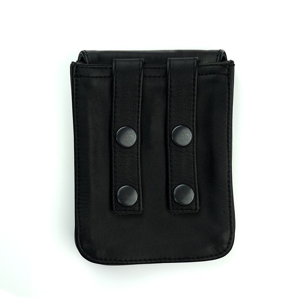 The pouch wallet is a compact yet roomy wallet meaning you can store larger essentials when out and about partying. Two snap fastenings at the front flap of the wallet ensure your valuables are securely stored inside and the thick leather will look great combined with your fetish outfit. Choose from all black or black with either red or grey stitching details for your desired look.