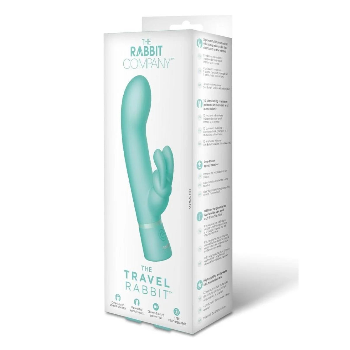 Made from body-safe silicone, the Travel Rabbit has two powerful independent motors in the shaft and rabbit and is USB rechargeable.